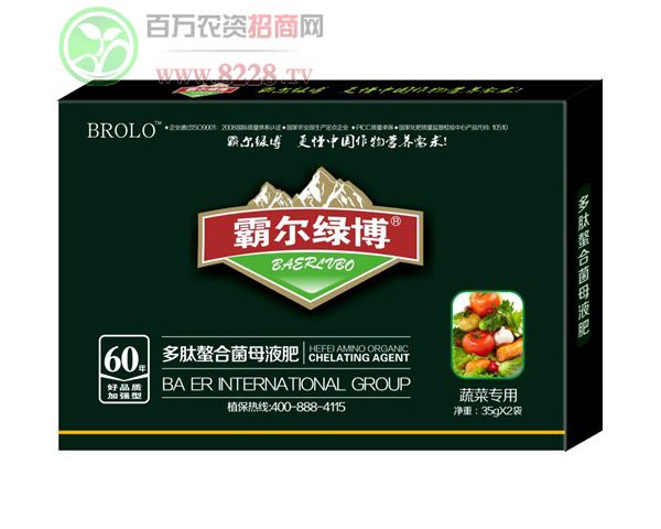 河南綠霸化工有限公司是一家集肥料科研開發、生產、銷售于一體的高科技含量的技術型公司。公司生產的“霸爾綠博”“肥太子”等品牌高端液肥,暢銷國內30多個省市。現擁有*認證的大量元素水溶肥料、中量元素水溶肥料、微量元素水溶肥料、含氨基酸水溶肥料、復合微生物肥料等高端肥料研發、生產資質。